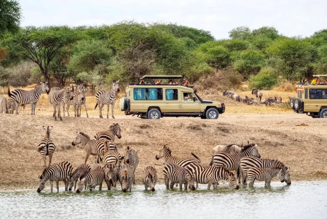 Transition from mountain terrain to the vast savannah plains as you depart for Tarangire National Park. Your journey takes you through picturesque landscapes, dotted with acacia trees and winding rivers, offering glimpses of Tanzania's natural splendor. Upon arrival at Tarangire, prepare for an immersive wildlife experience as you embark on a full-day game drive. Witness herds of elephants congregating around the Tarangire River, while lions, leopards, and other predators roam the grasslands in search of prey. As the sun sets, retreat to the comfort of Fig tree lodge , where tales of the day's adventures are shared under the star-studded African sky.